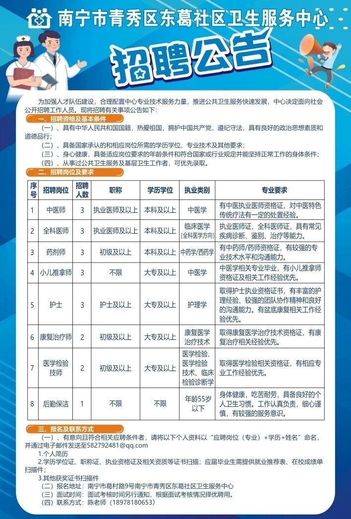 2025年南寧市青秀區(qū)東葛社區(qū)衛(wèi)生服務中心招聘公告