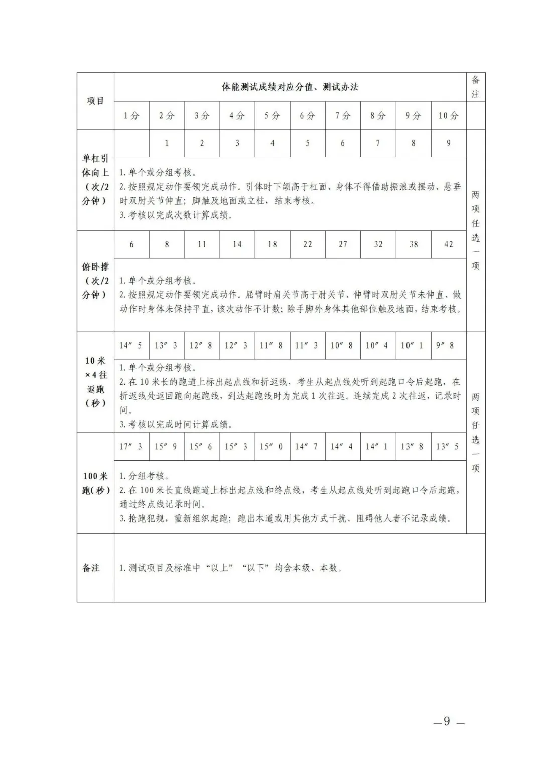 附件2:體能標(biāo)準(zhǔn)測試標(biāo)準(zhǔn)
