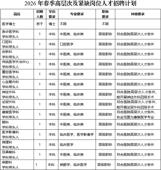 本著按需招聘,貫徹“公開、平等、競爭、擇優(yōu)”原則,現(xiàn)將2026年春季高層次及緊缺崗位人才招聘有關(guān)事項(xiàng)公告如下: