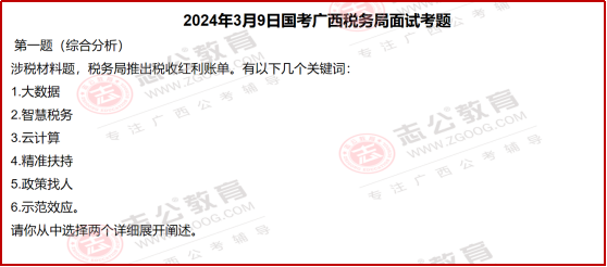 1??綜合分析題:不是泛泛而談的社會(huì)熱點(diǎn),而是緊扣稅務(wù)新政 —— 比如 “稅收紅利賬單” 題,要求從 “大數(shù)據(jù)”“政策找人” 等稅務(wù)專屬關(guān)鍵詞中選2個(gè)闡述,既考察對(duì)稅務(wù)數(shù)字化轉(zhuǎn)型的理解,也考驗(yàn)邏輯提煉能力