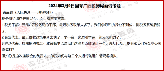 國考面試?yán)?,稅?wù)系統(tǒng)的題目一直有個(gè)很明顯的特點(diǎn),就是緊跟國家政策、貼近實(shí)際工作。尤其是2024年廣西稅務(wù)局的面試題,把這個(gè)特點(diǎn)體現(xiàn)得特別透徹??催@些題目,既能知道稅務(wù)工作實(shí)際需要什么樣的人、做什么樣的事,也能清楚面試到底要考察我們哪些核心能力。今天小志就帶大家了解一下,國考中稅務(wù)系統(tǒng)面試一些相關(guān)信息解讀: