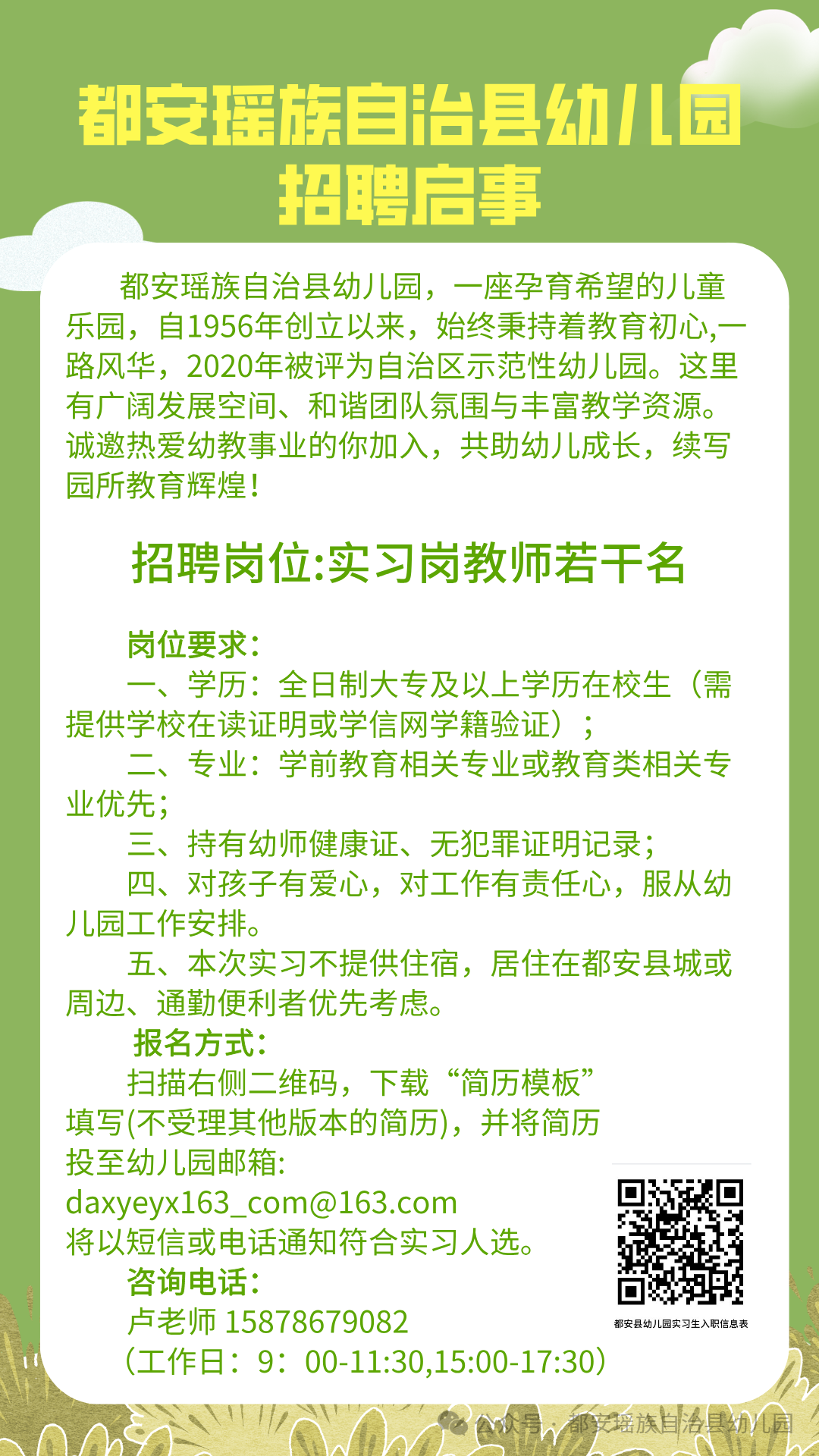 2026年都安瑤族自治縣幼兒園實(shí)習(xí)生招聘啟事