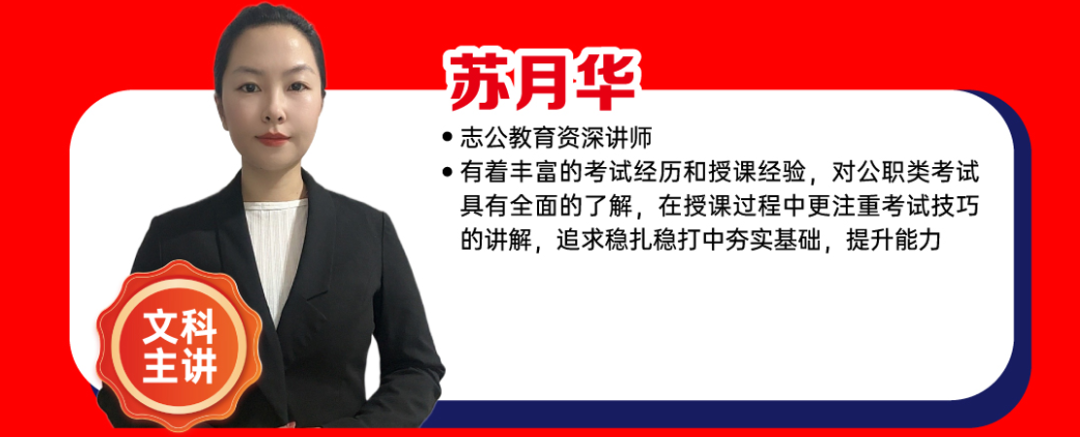 ?有著豐富的考試經(jīng)歷和授課經(jīng)驗(yàn),對(duì)公職類(lèi)考試具有全面的了解,在授課過(guò)程中更注重考試技巧的講解,追求穩(wěn)扎穩(wěn)打中夯實(shí)基礎(chǔ),提升能力。