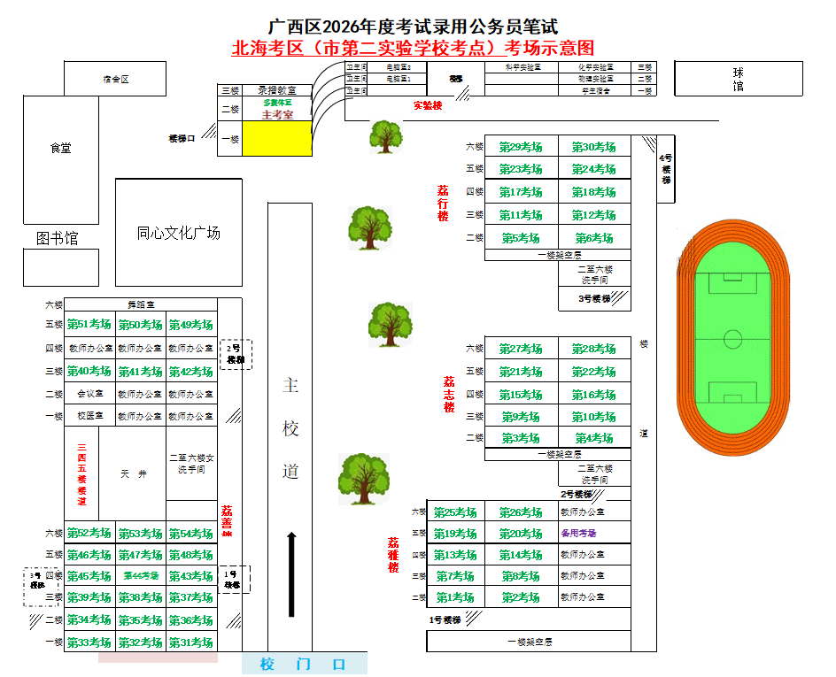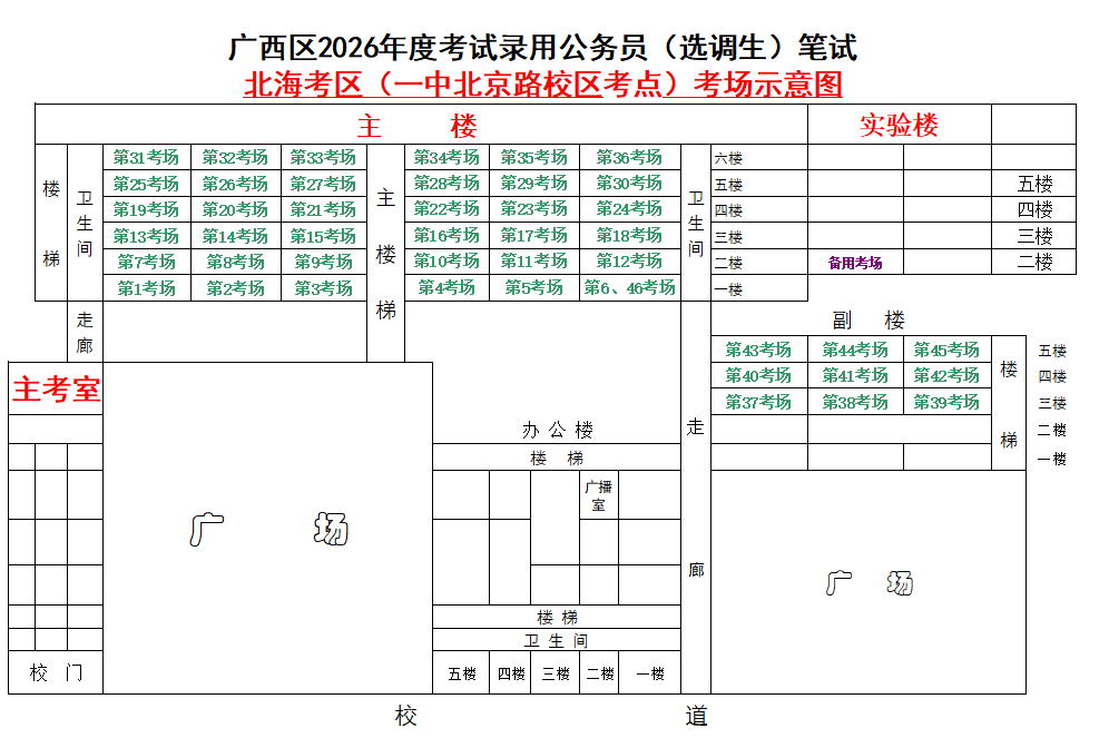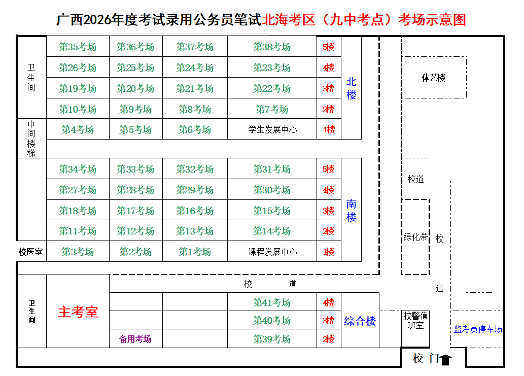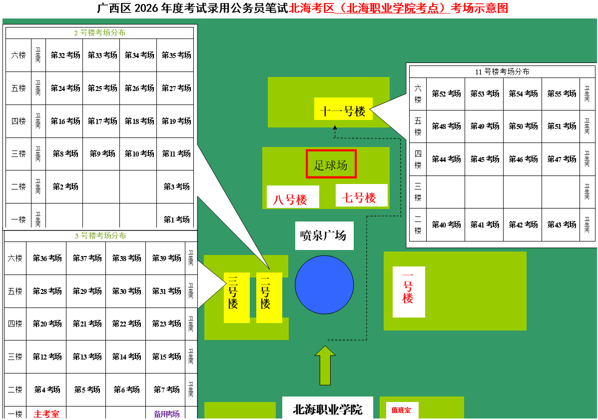 北??紖^(qū)共設(shè)置6個(gè)考點(diǎn),具體考點(diǎn)考場(chǎng)布置分別如下: