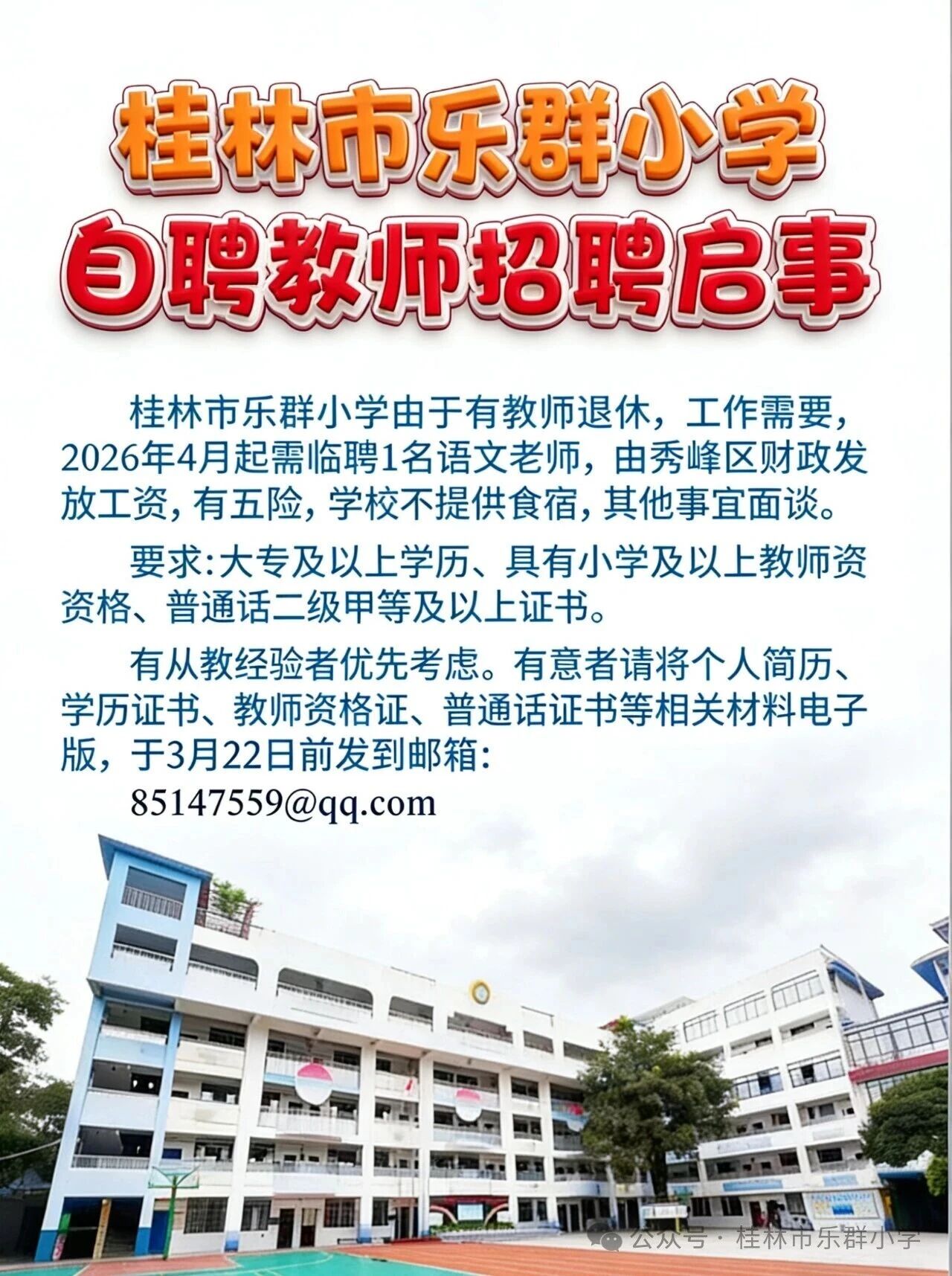 2026年桂林市樂(lè)群小學(xué)自聘教師招聘1人